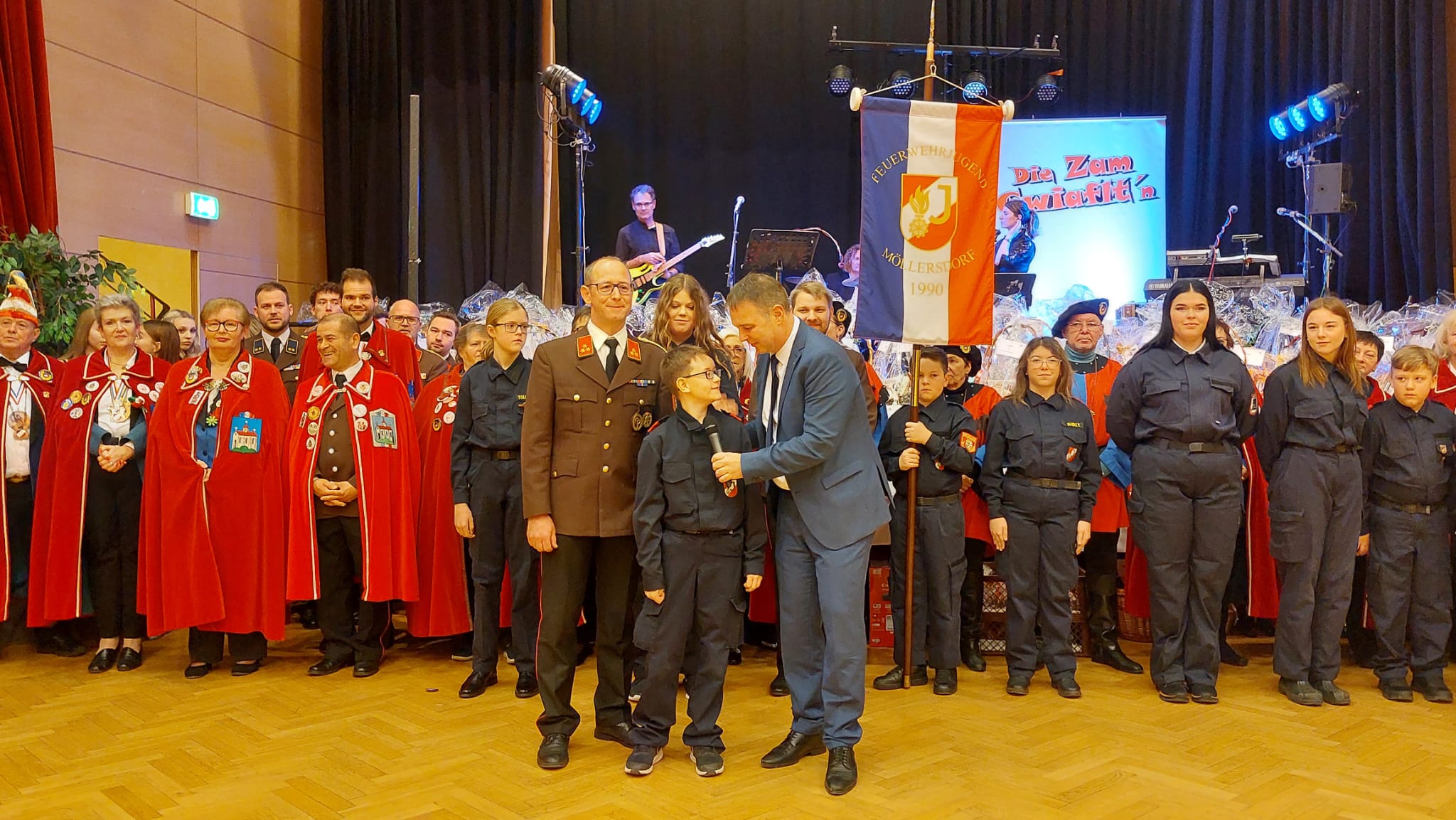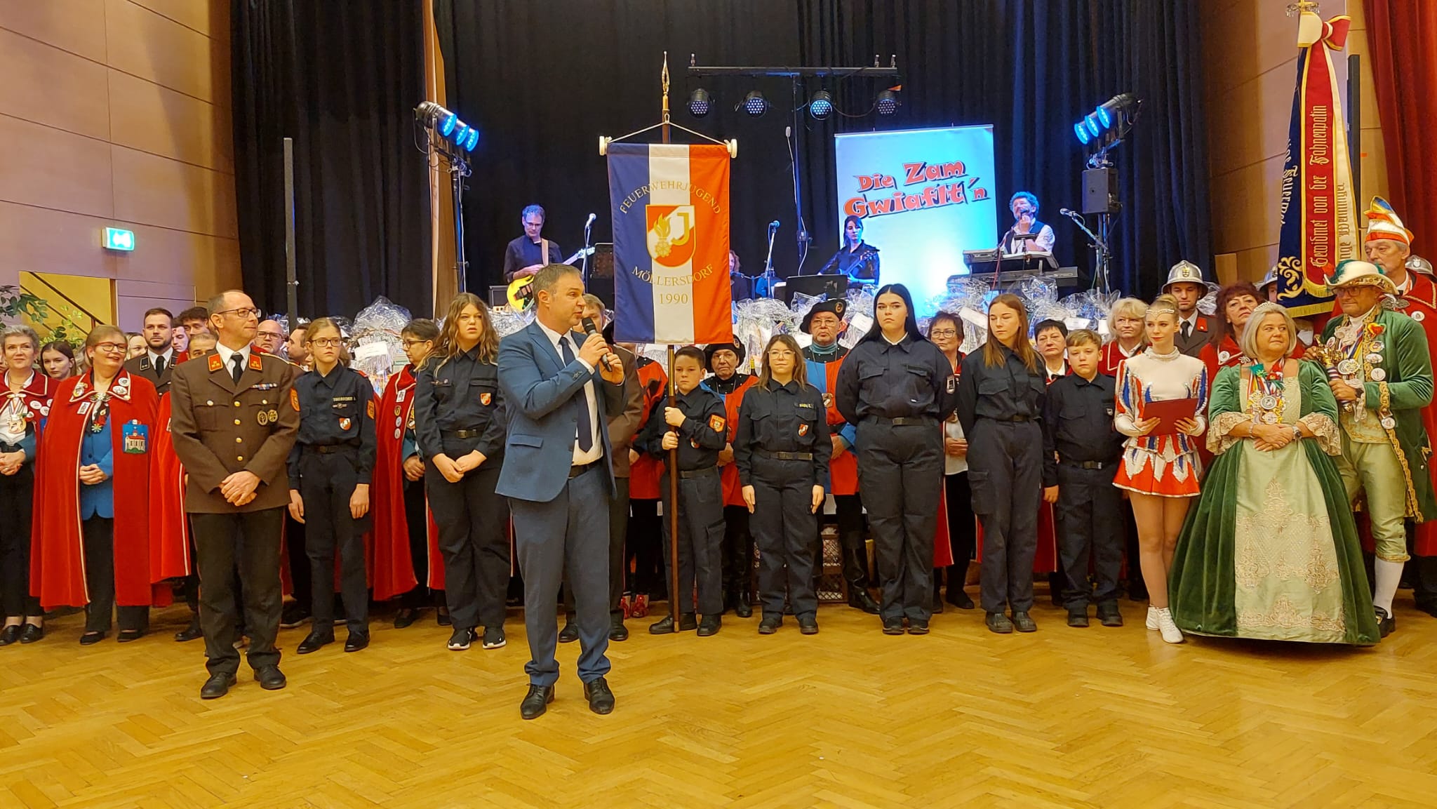 Feuerwehr - Kommandant Stocker und sein Team konnten vor einem ausverkauften Gschnas viele Ehrengäste begrüßen.
